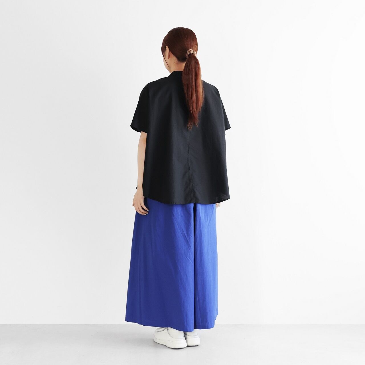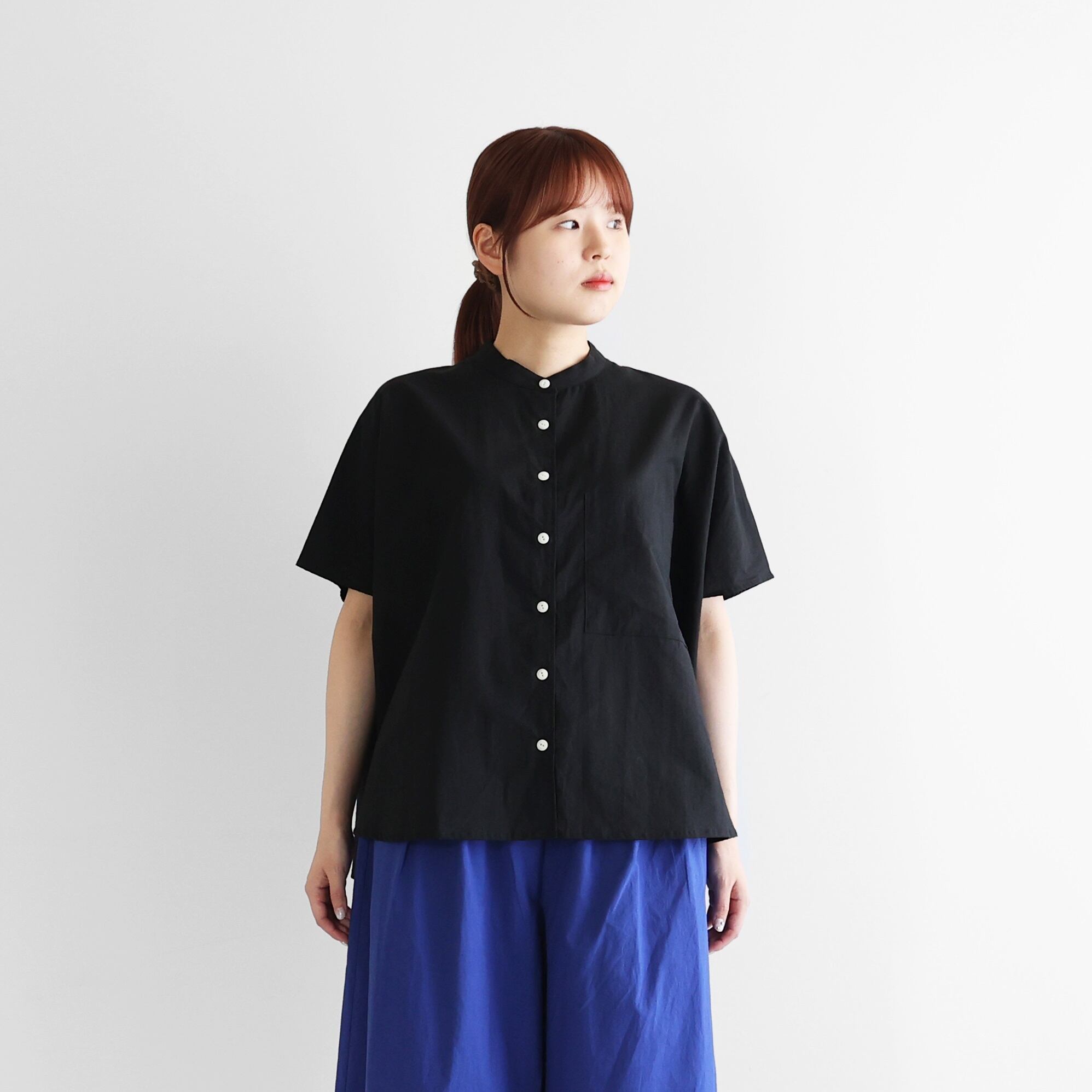 HUIS / コットンリネンバンドカラー半袖ワイドブラウス - ブラック