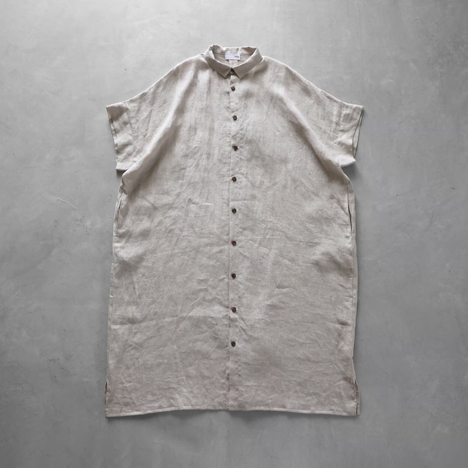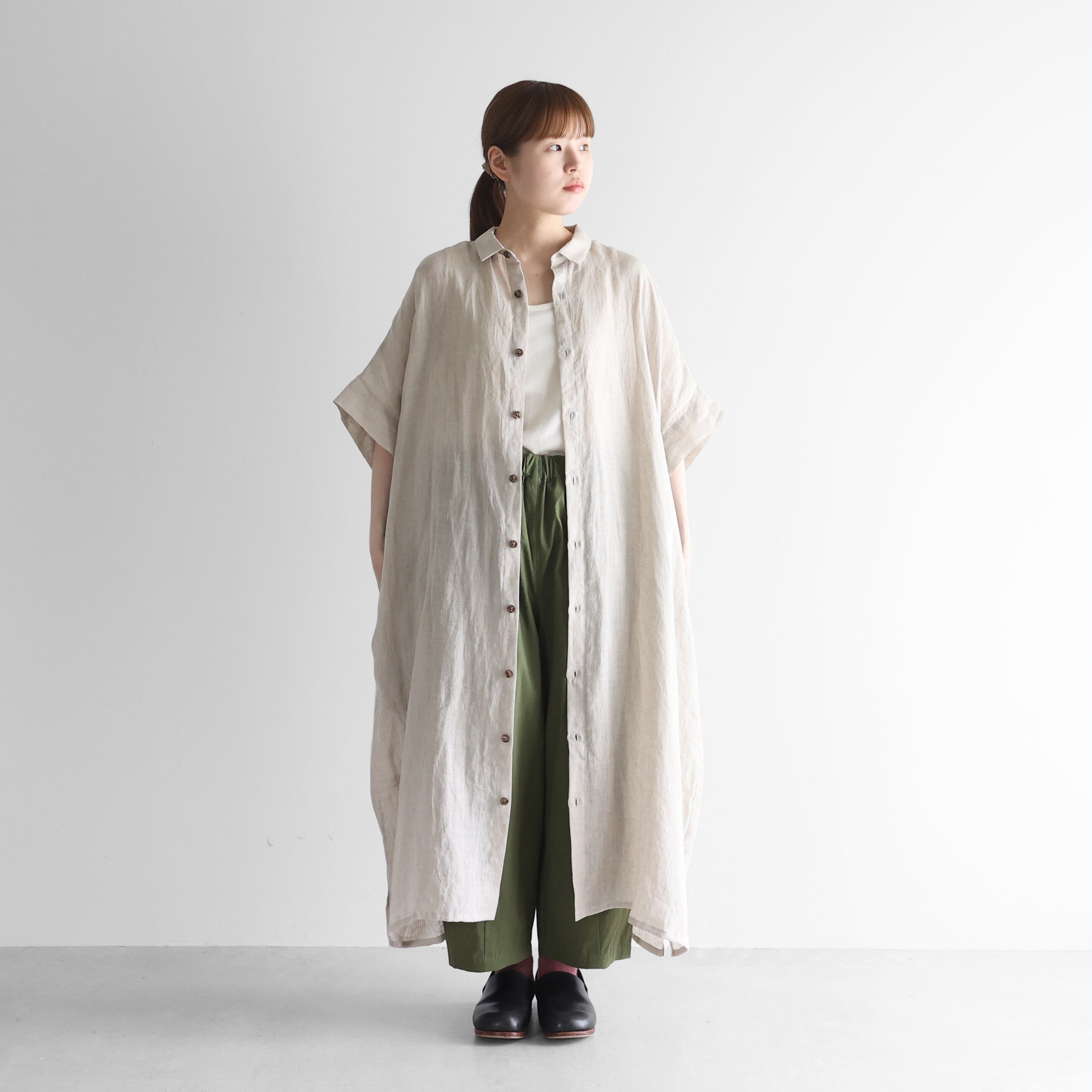HUIS / シャトルリネンライトショートスリーブロングシャツ - きなり