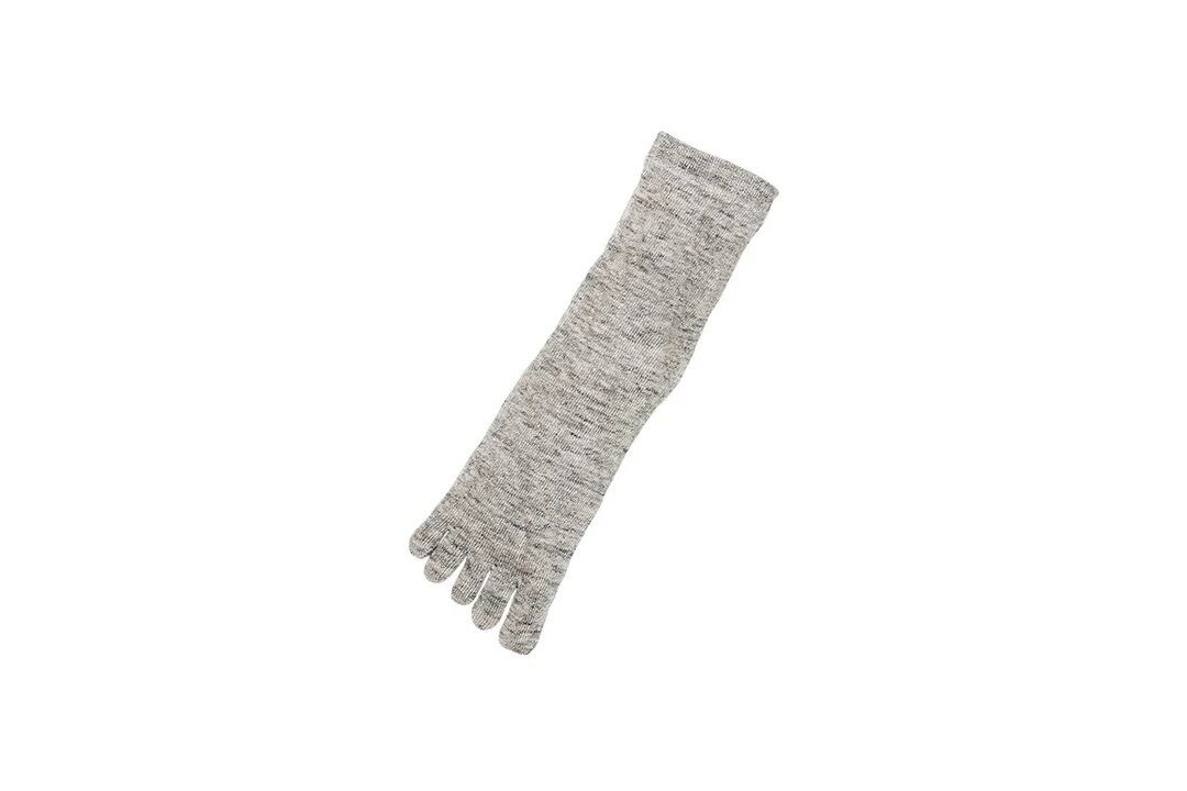 NISHIGUCHI KUTSUSHITAの姉妹ブランド"memeri" 爽やかな履き心地の5本指ソックスです。 リネンは汗をかいても吸収してくれたり、さらっとドライにしてくれたり。 暑い日にぴったりなやさしい靴下です。 【Color】 charcoal / beige / light gray / blue 【Size】 23~25 cm 【Material】 linen 95%, polyester 4%, polyurethane 1%