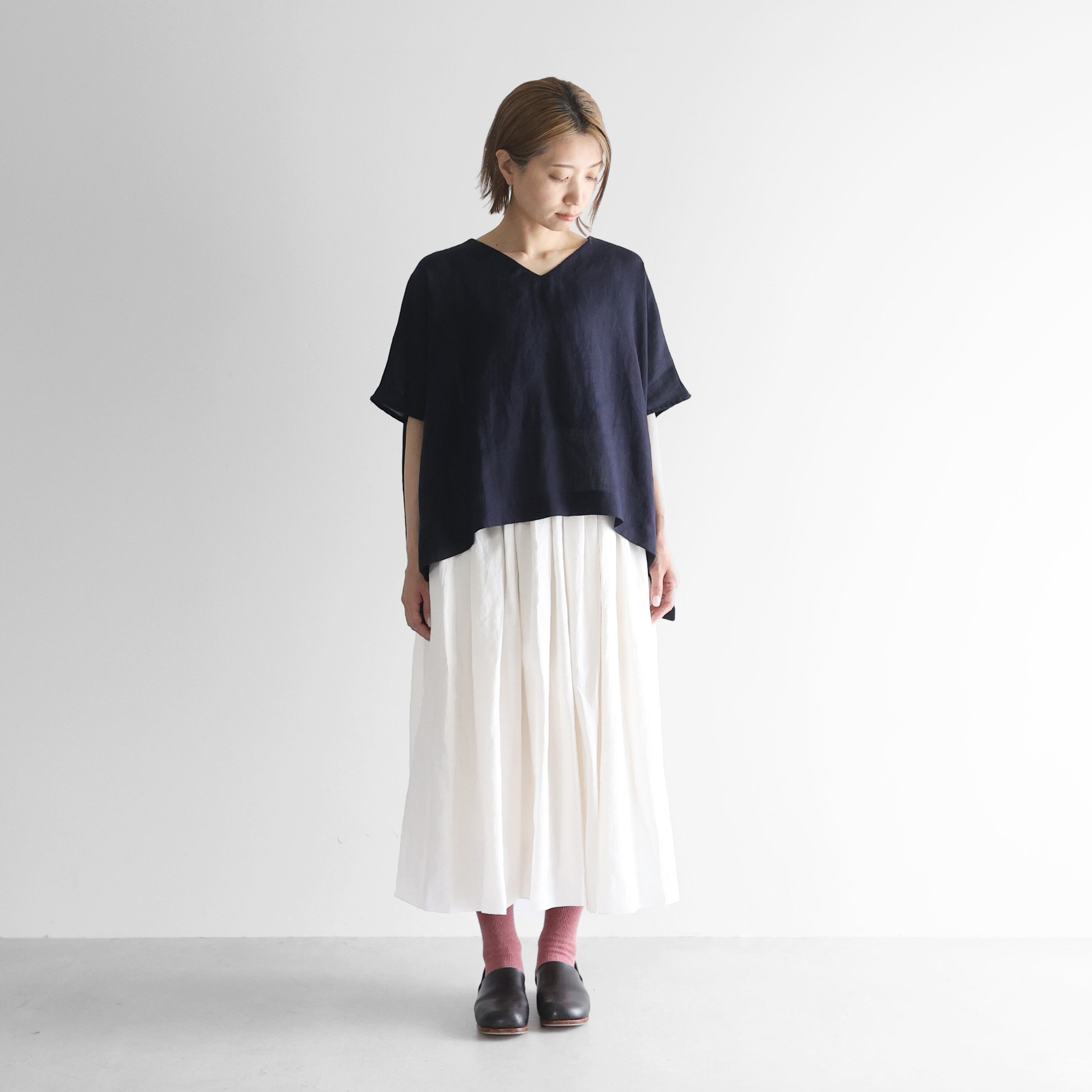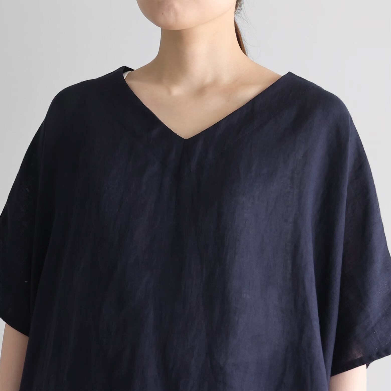 HUIS / シャトルリネンライトVネック半袖プルオーバー - ダークネイビー