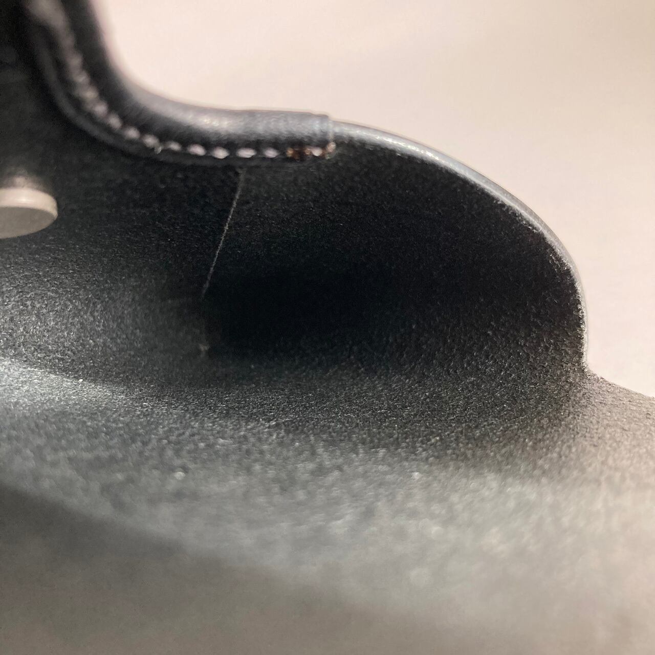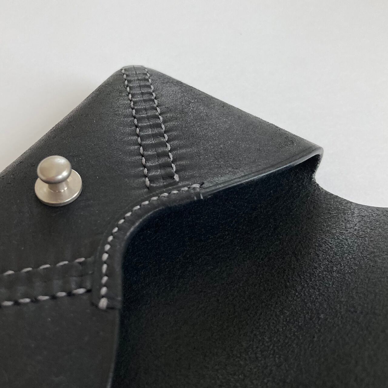 革の表面だけを掬い取り、断面と断面を縫い合わせるという繊細な手縫いの技術が用いられています。