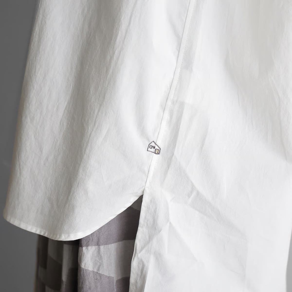 バンドカラーのすっきり感と、オーバーサイズのゆったりとした雰囲気が魅力のシャツです。
