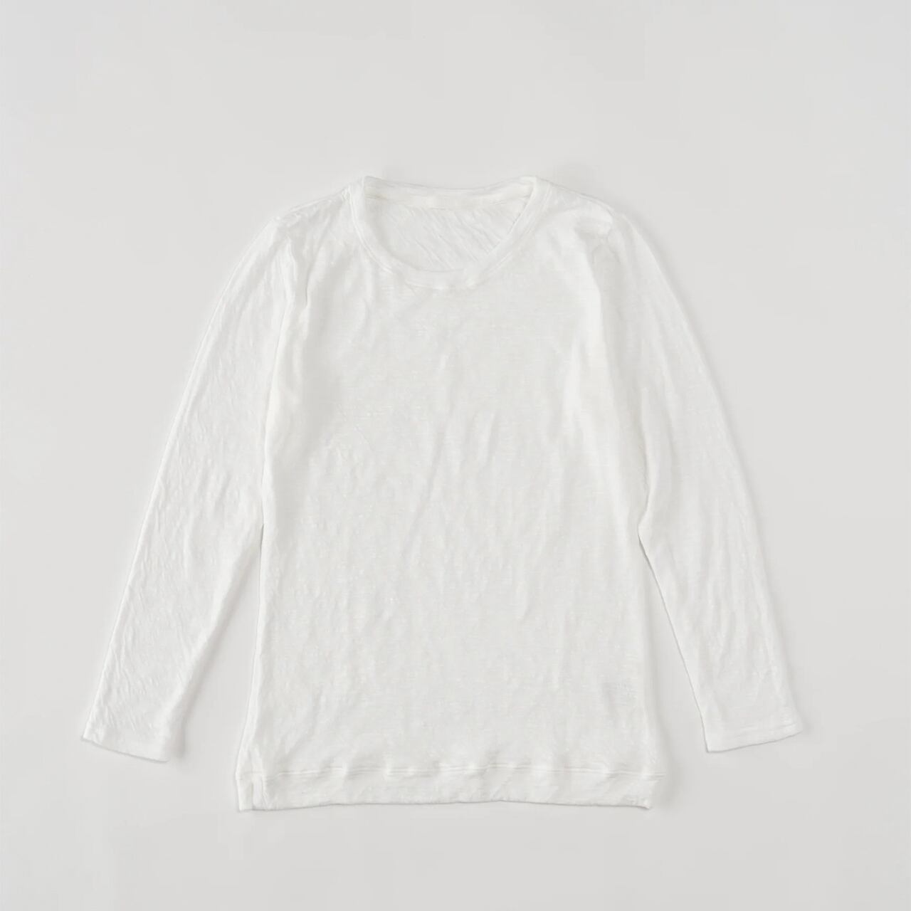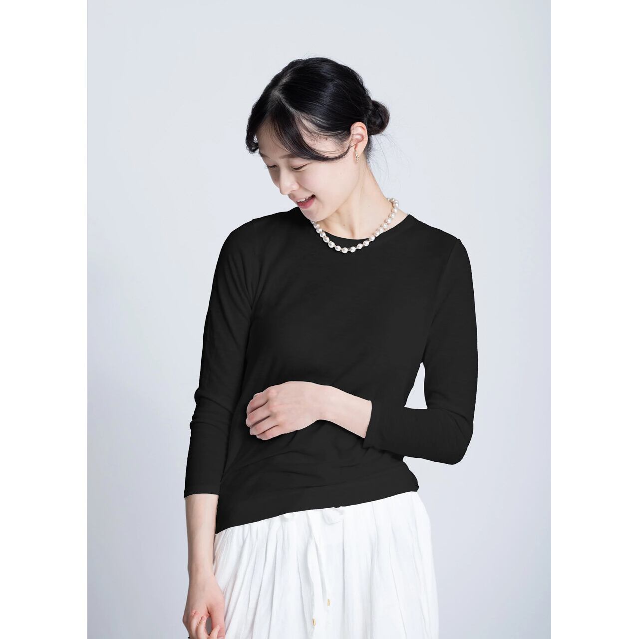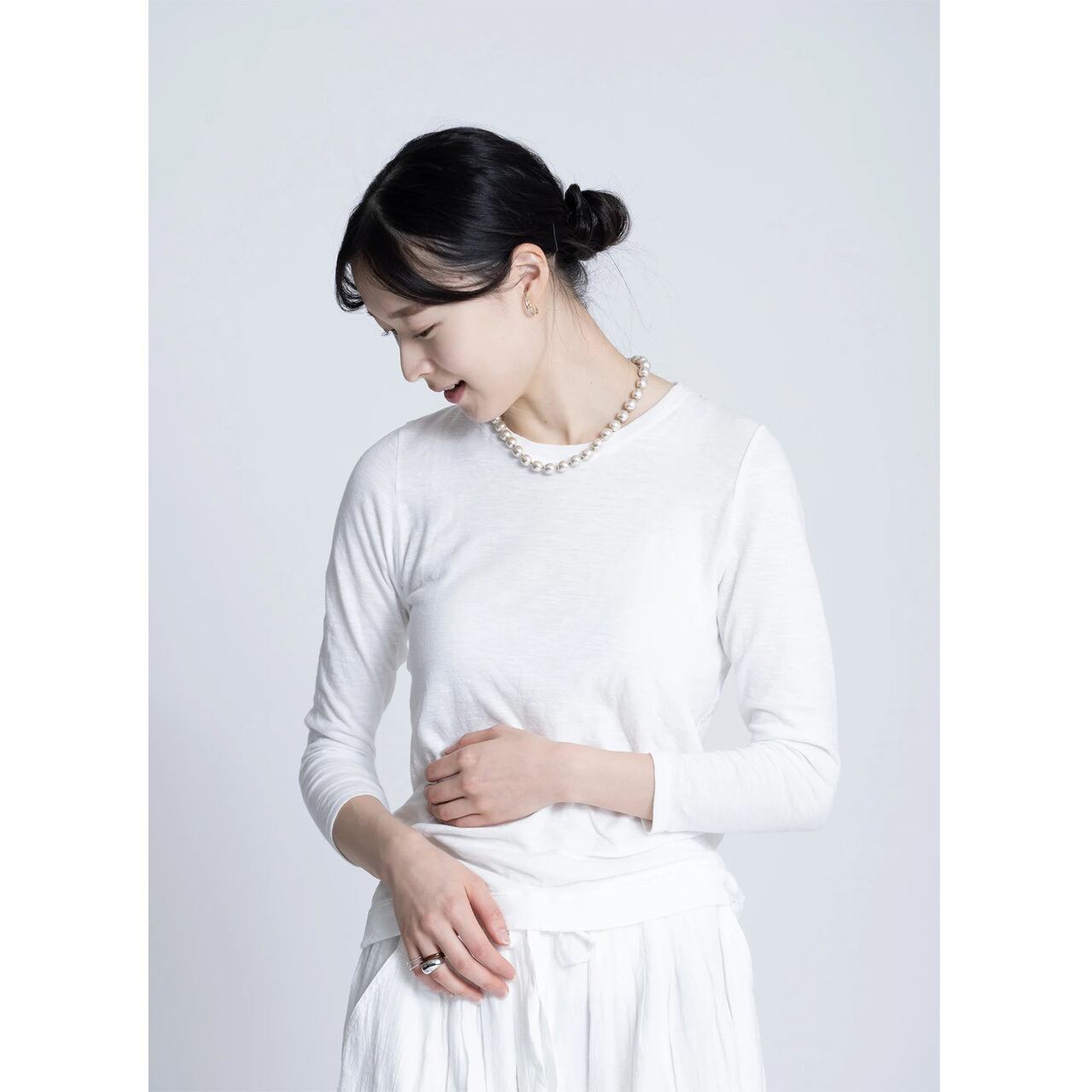 細い糸で編んだ生地を2層に編み合わせた、なめらかな8分袖Tシャツ。