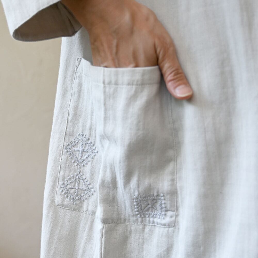 両脇にあるポケットには、一針一針丁寧に刺繍が施されています。