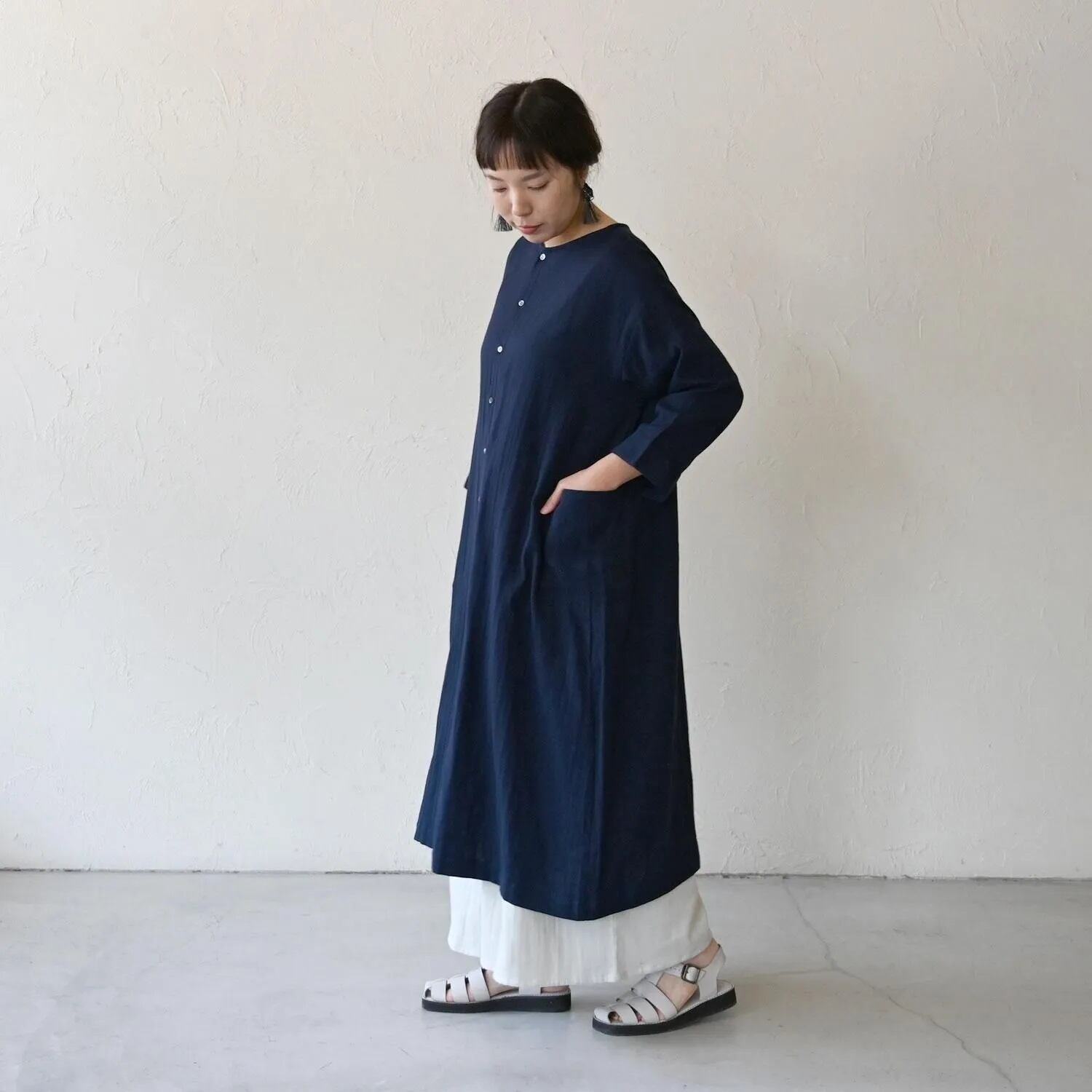 柔らかなダブルガーゼ生地のVネックワンピース