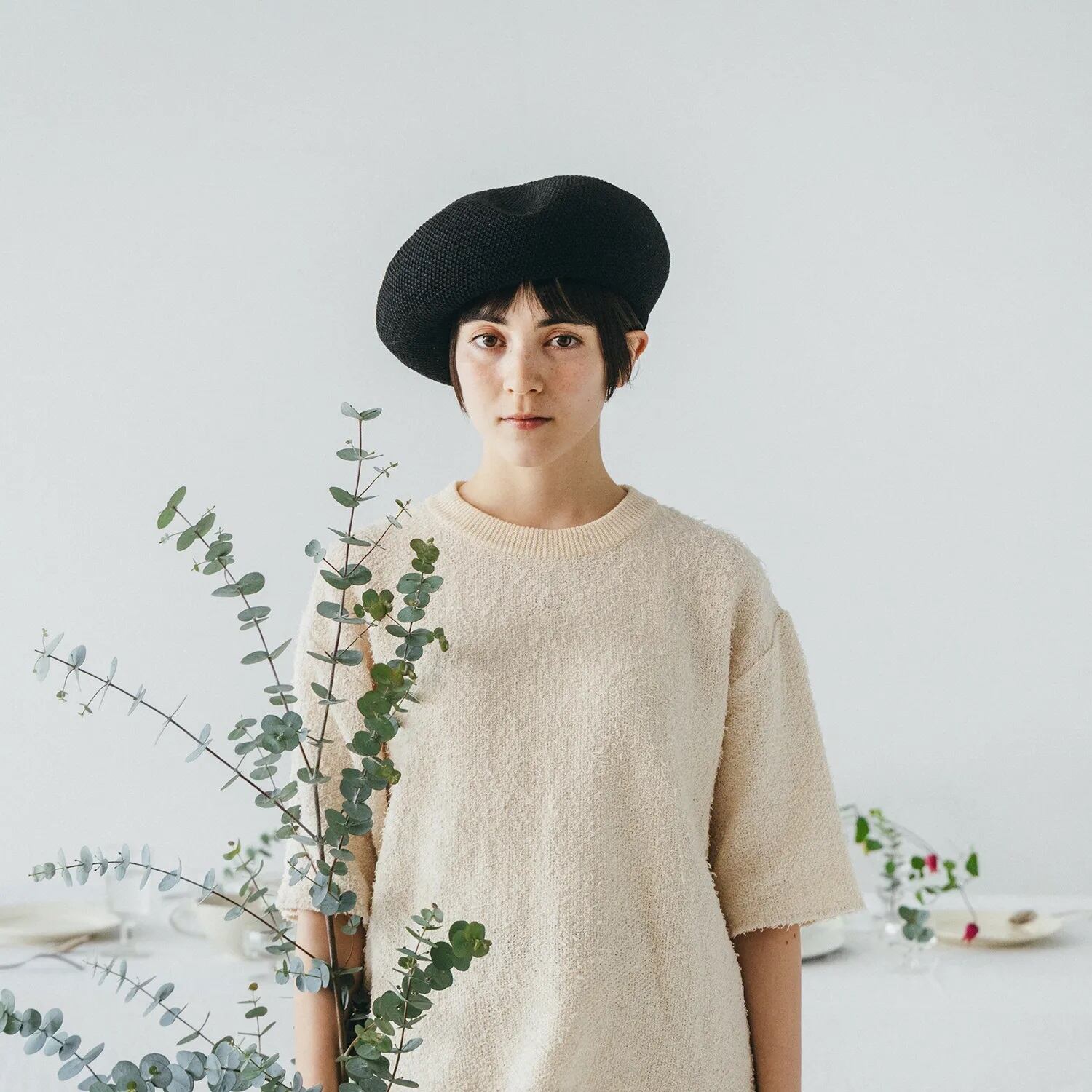 鹿の子編みの大きめのベレー帽です。 リネン糸と擬麻加工が施された綿糸に、ハリ感の少ない成型糸を合わせて編み立てられています。 柔らかな被り心地が特徴です。 通気性に優れているので、夏場でも快適に過ごせそうです。 【Color】 グレー/ブラック 【Material】 linen 36%, cotton 36%, polyester 28% 【Size】 頭周り 約58.5cm