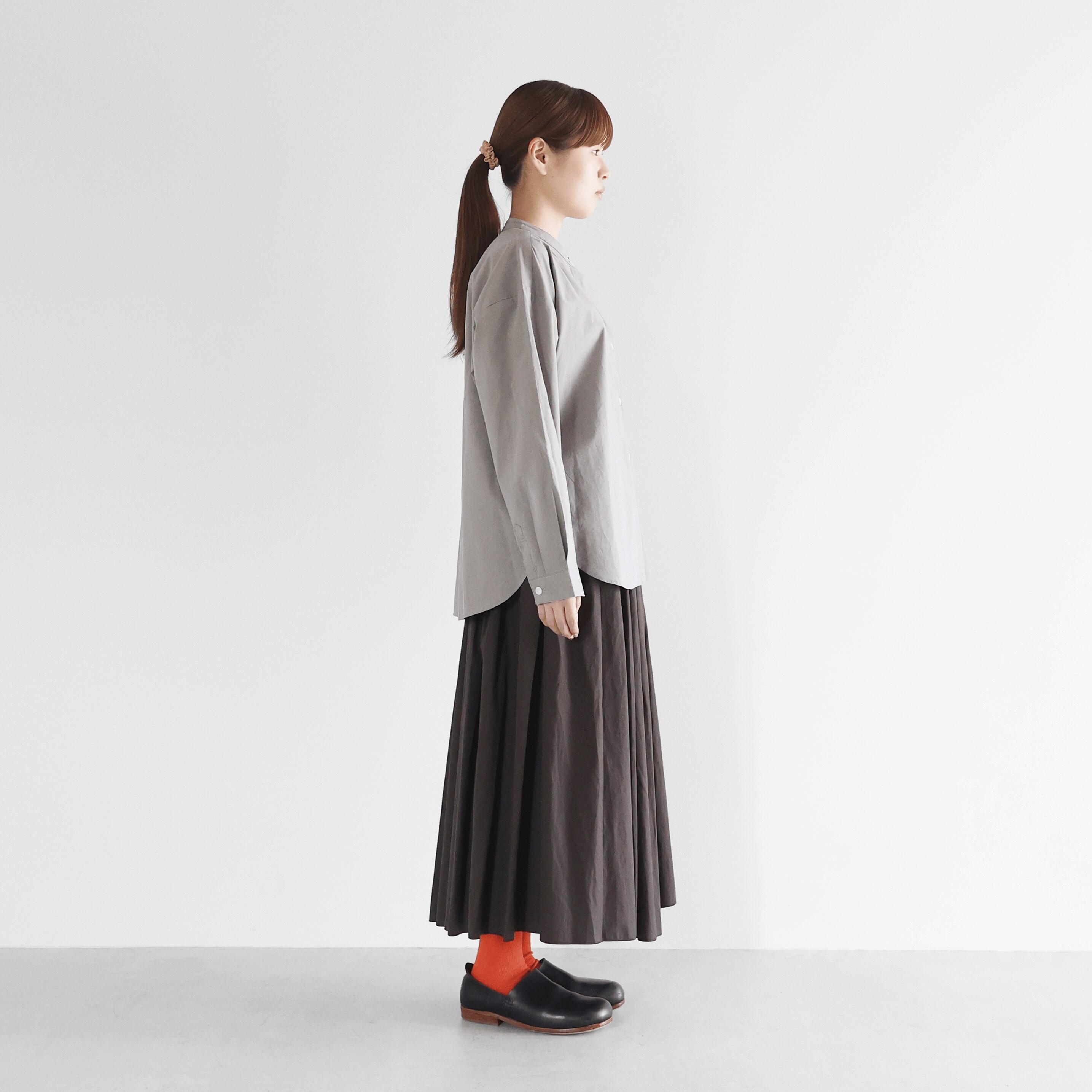 オーガニックコットンを使用したバンドカラーブラウス 柔らかで上質な肌触りが特徴のブラウスです。 上品な印象で、カジュアルにもフォーマルにも馴染む一着です。 【Color】 ライトグレー 【Material】 cotton 100% 【Size】 肩幅55 / 身幅57 / 着丈64 / 袖丈48 cm