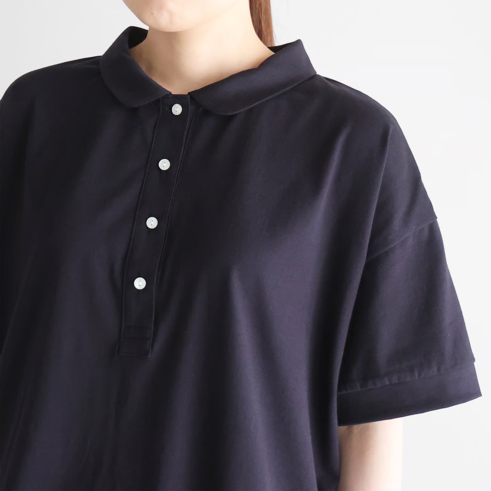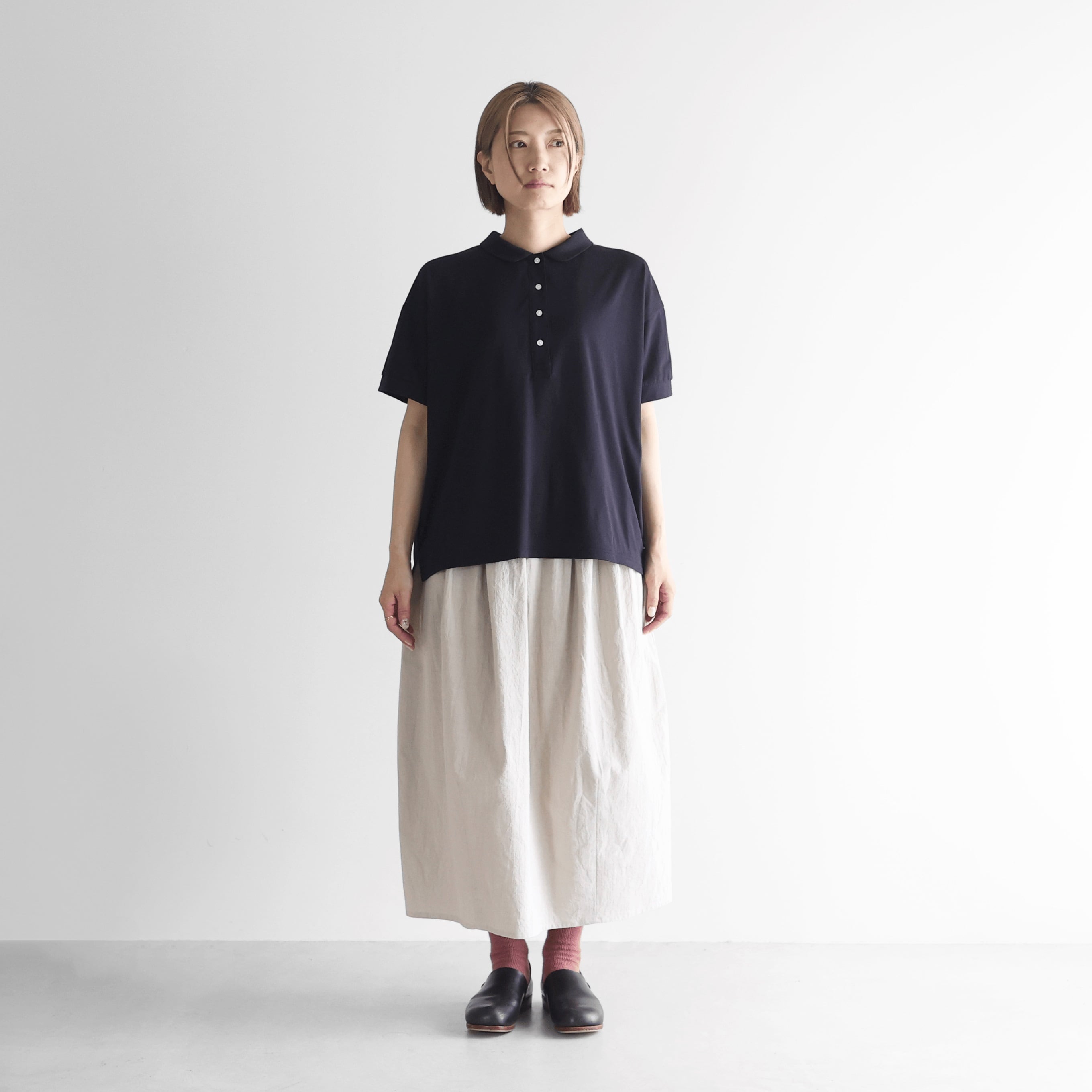 HUIS in house / SUVIN COTTON半袖ポロカットソー - ダークネイビー