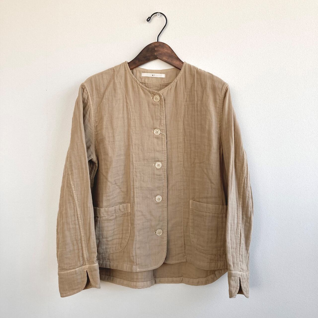 ふんわりとした3重ガーゼ生地を使った、肌当たりの優しいジャケットです。