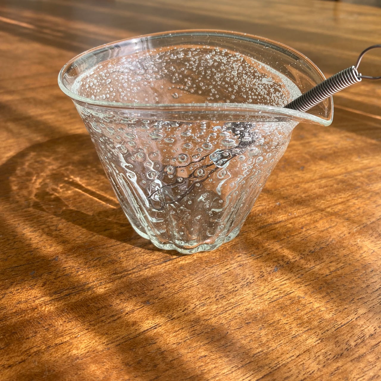 ぷくぷくと気泡の入った、素敵なガラスです。