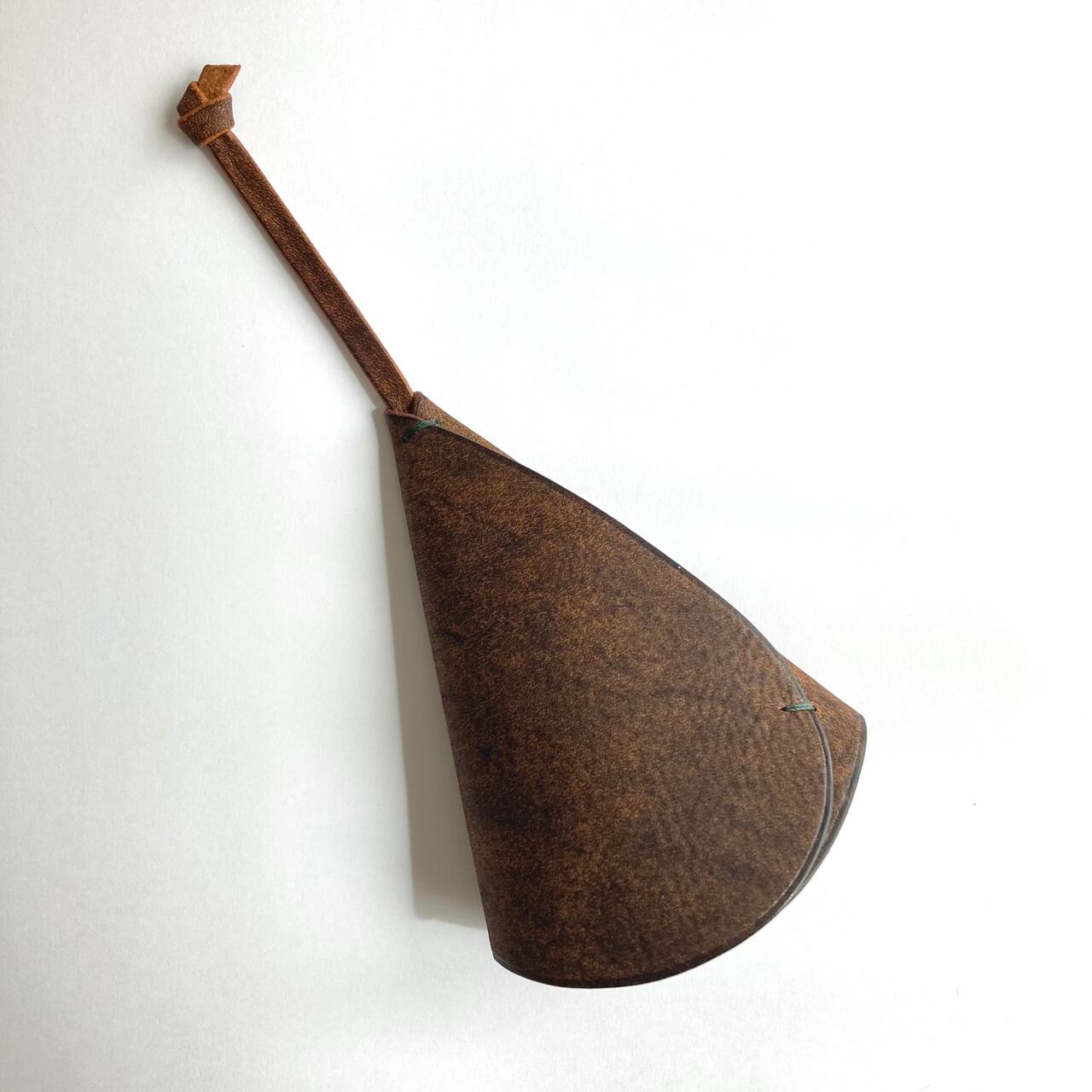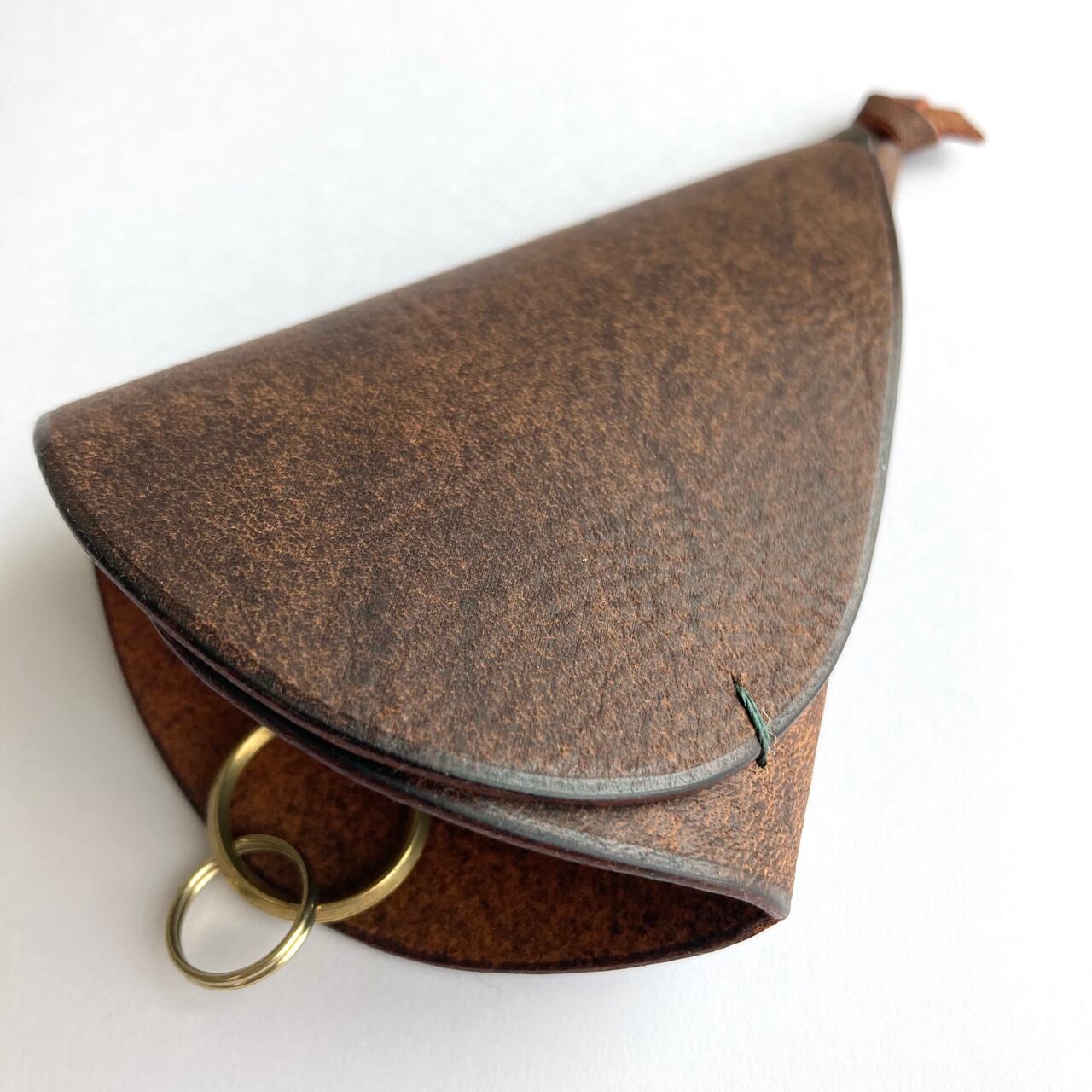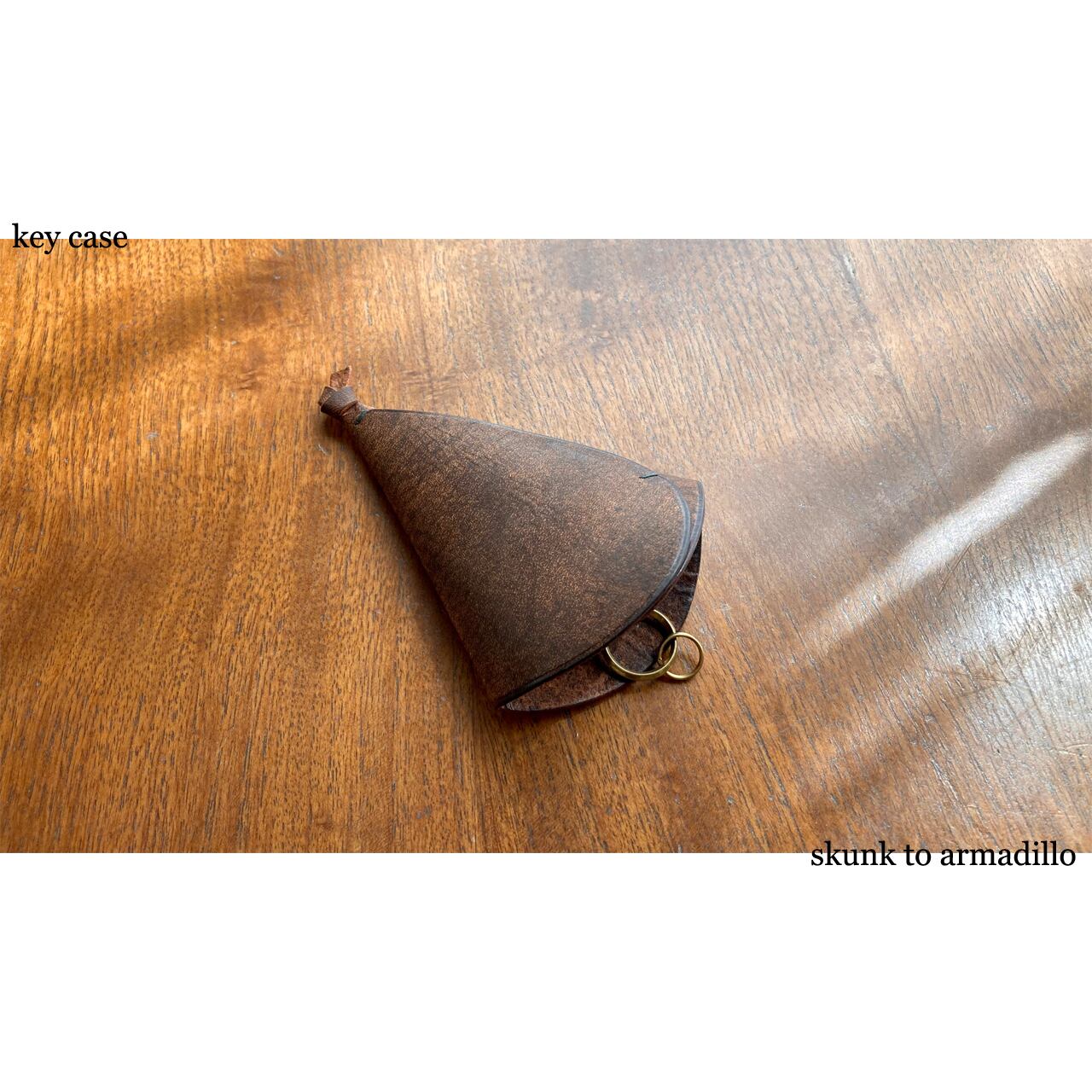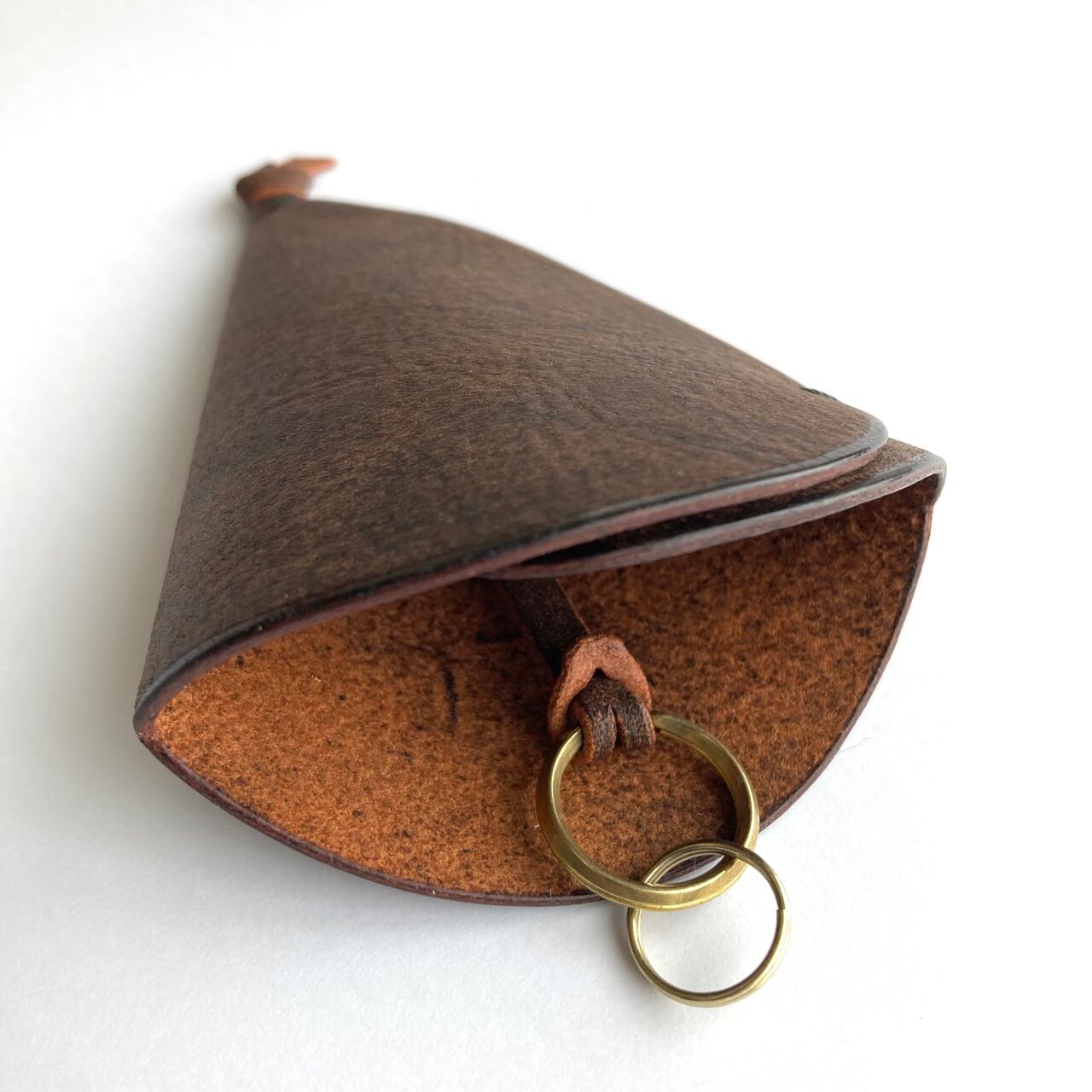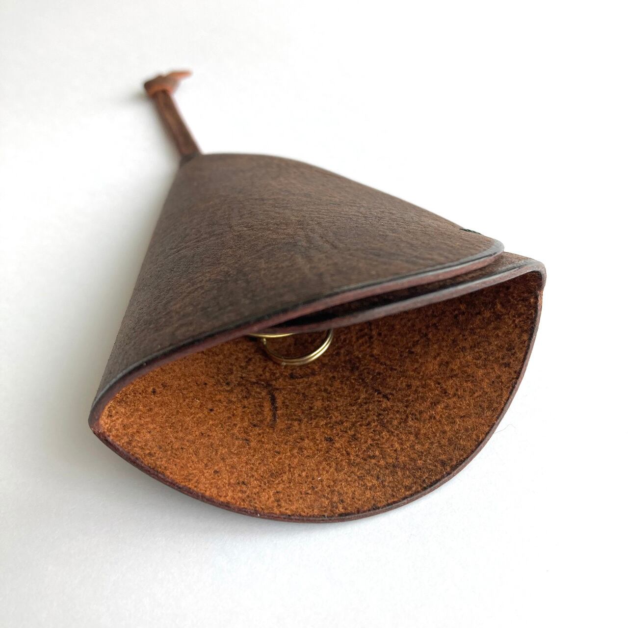 紐を引っ張り鍵の出し入れをするデザインのレザーキーケースです。