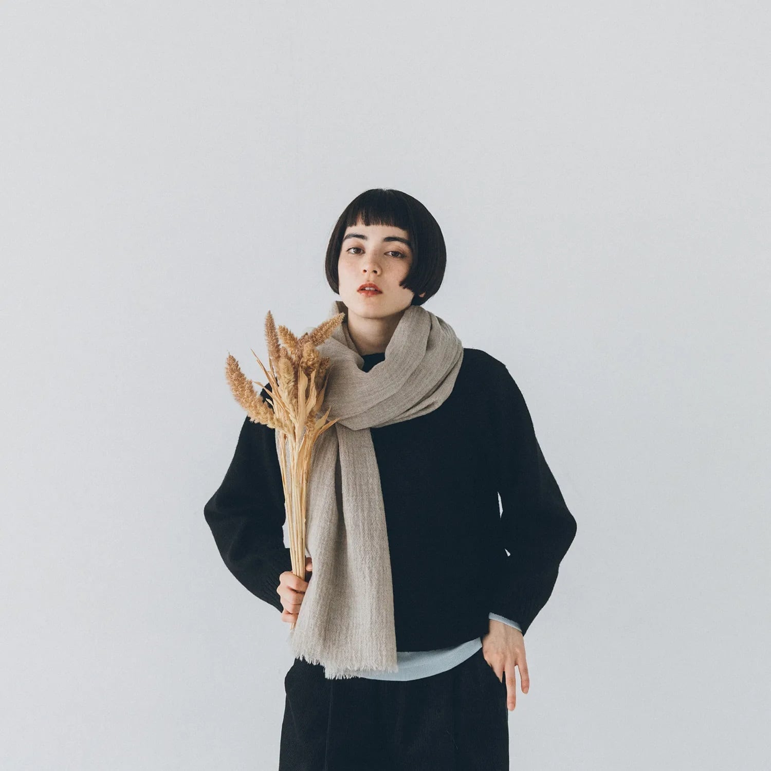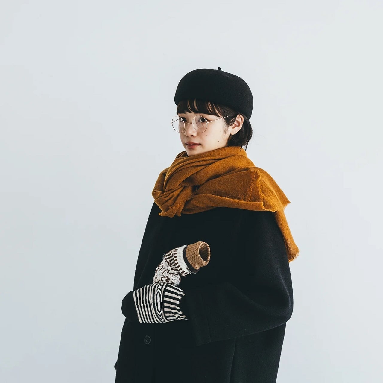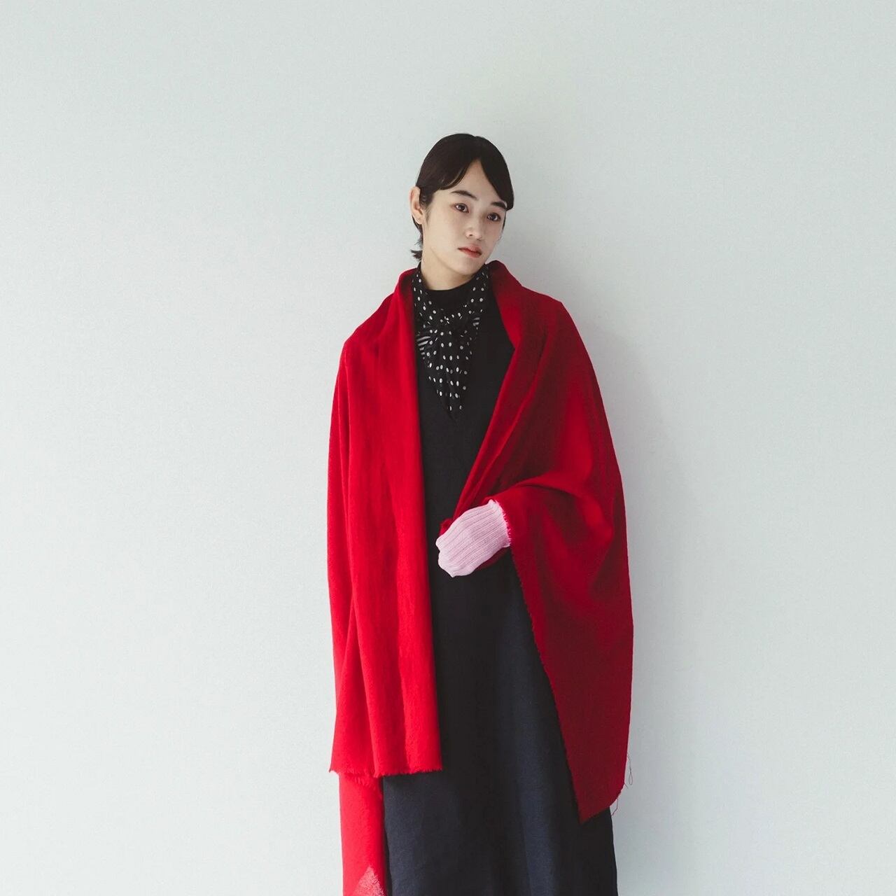 大判サイズなので、くるくると巻いてボリューム感を出したりラフに羽織ったり、スタイリングが楽しめます。