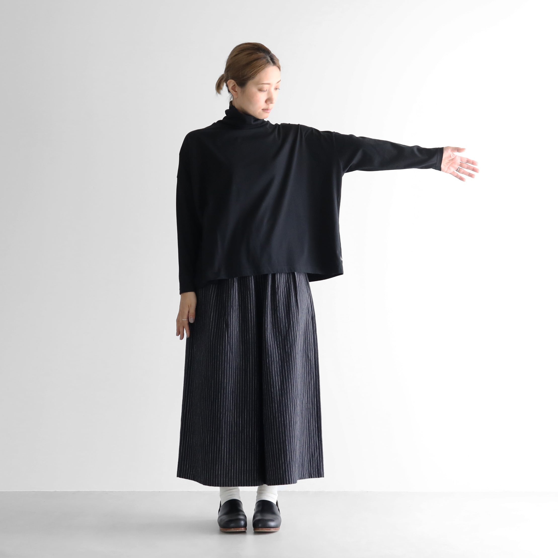 HUIS in house / SUVIN COTTON長袖スクエアワイドタートルカットソー
