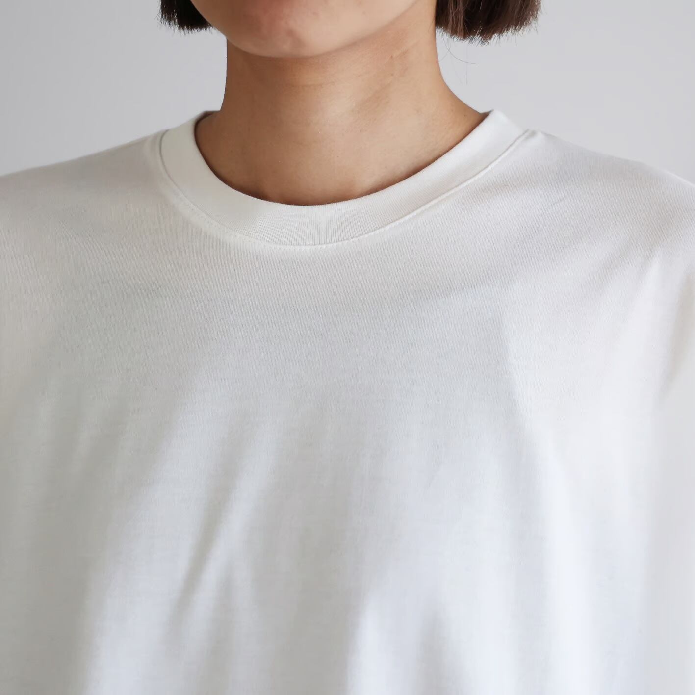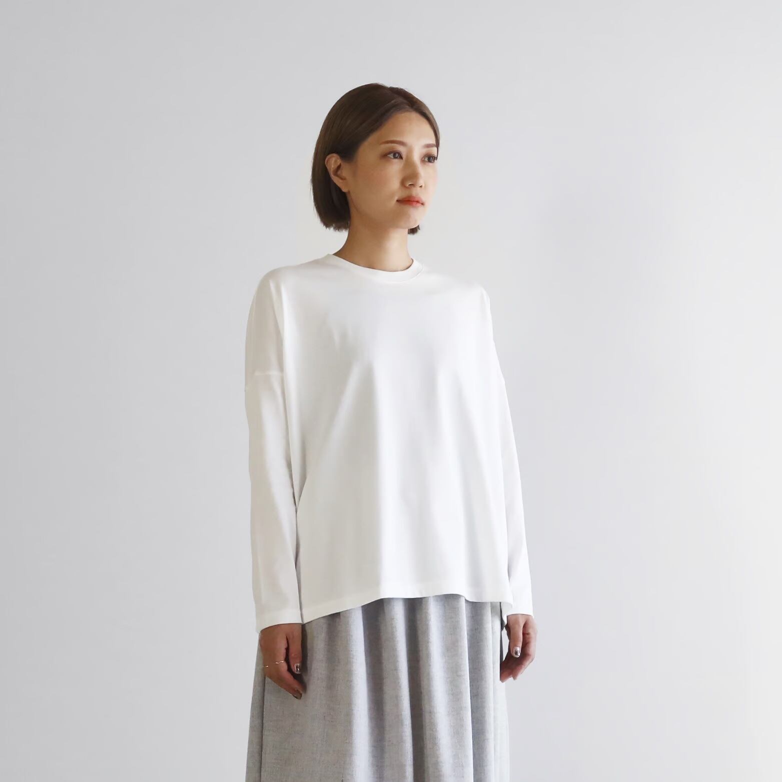 HUIS in house / SUVIN COTTON長袖スクエアワイドカットソー - 白